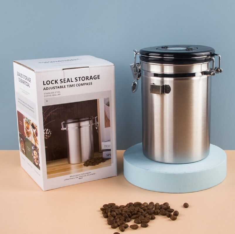 1x Stainless Steel Coffee Storage Canister with silicone handle Spoon