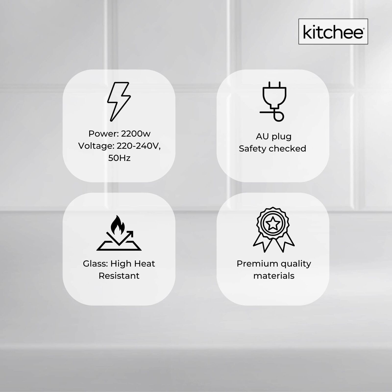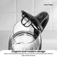 $113.99This timeless, elegant and stylish full glass kettle by Kitchee, does not just add a contemporary LED spark to your kitchen, but delivers a much healthier way to make a cuppa in quality heat resistant high pressured glass.