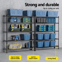 Its middle supporting beam adds extra stability, while the expandable design allows you to increase your storage capacity by adding extra units as required. Whether you need more space for your home or a larger setup in your garage or workshop, the Giantz 5-Tier Storage Rack provides the perfect, space-saving solution.