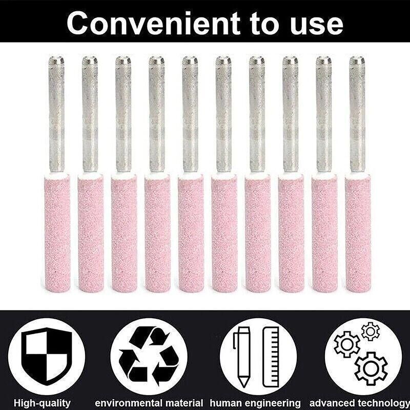 Crafted from high-quality chrome steel jade, these cylindrical grinding stones boast about 120-150 mesh, ensuring fine and precise sharpening. Whether you're tackling tough jobs or ensuring your chainsaw is in top condition, this 10-pack offers a cost-effective solution for maintaining your tool's efficiency.