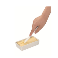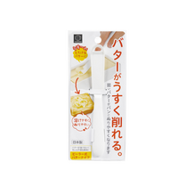 The butter knife has a peeler on the tip so that even hard butter can be easily shaved by pressing down on the surface.