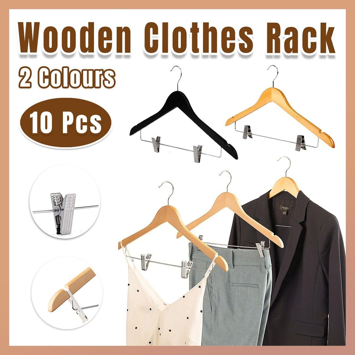 10 x Wooden Clothes Hangers with Adjustable Clips