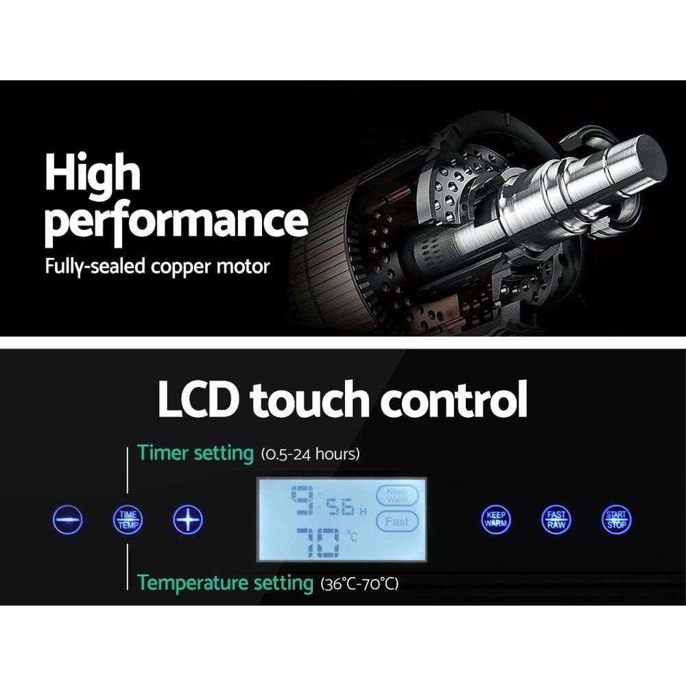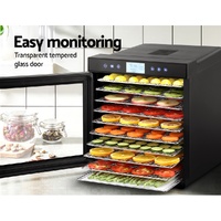 $185.06If you love healthy snacks or need to follow a diet plan, our Devanti Food Dehydrator is a must-have. Dehydrated foods have a longer shelf life and retain the same amount of vitamins and minerals as do their fresh counterparts. Even more so, with richer and more concentrated flavours. And our food dehydrator will set you up to enjoy all this delectable goodness by creating your very own, great tasting health foods. With its ten food-grade stainless steel food trays, our food dehydrator features a complete drying system with all the necessary controls to effectively dry vegetables, fruits, herbs, meat and more. The simple LCD touch control panel lets you adjust the temperature (35°C-70°C) and timer (0.5-24 hours) to suit what you are dehydrating, while the transparent tempered glass door lets you easily monitor the drying process. And when the drying is done, cleaning the removable trays is as simple as letting the dishwasher do all the work. Not least, the food dehydrator has overheating protection to ensure safe use and comes with a SAA-certified plug.