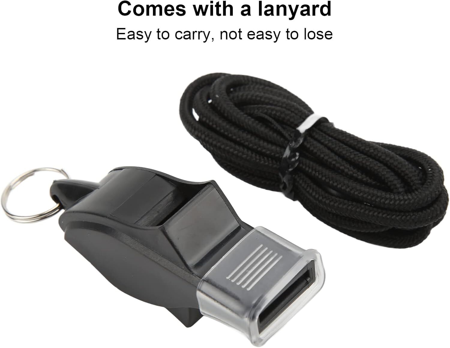 This bulk pack includes 100 ABS plastic whistles in 5 colors — Black, Red, Clear, Sky Blue, and Dark Blue. Designed for coaches, teachers, referees, and outdoor activities, each whistle delivers a loud, crisp sound and comes with a convenient neck lanyard for easy access.
