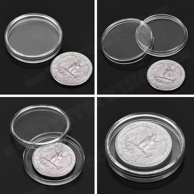 100pcs 46mm Clear Plastic Coin Holder Capsules Storage Box