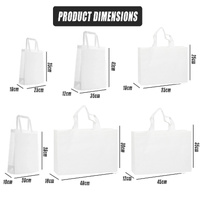 These white reusable shopping bags are crafted from laminated non-woven fabric, offering a clean, professional look with reliable strength. Ideal for events, retail packaging, promotional giveaways, or takeaway, the bags are waterproof, tear-resistant, and reusable. Their foldable structure makes them easy to store and carry, making them a practical eco-friendly solution for businesses and daily use alike.