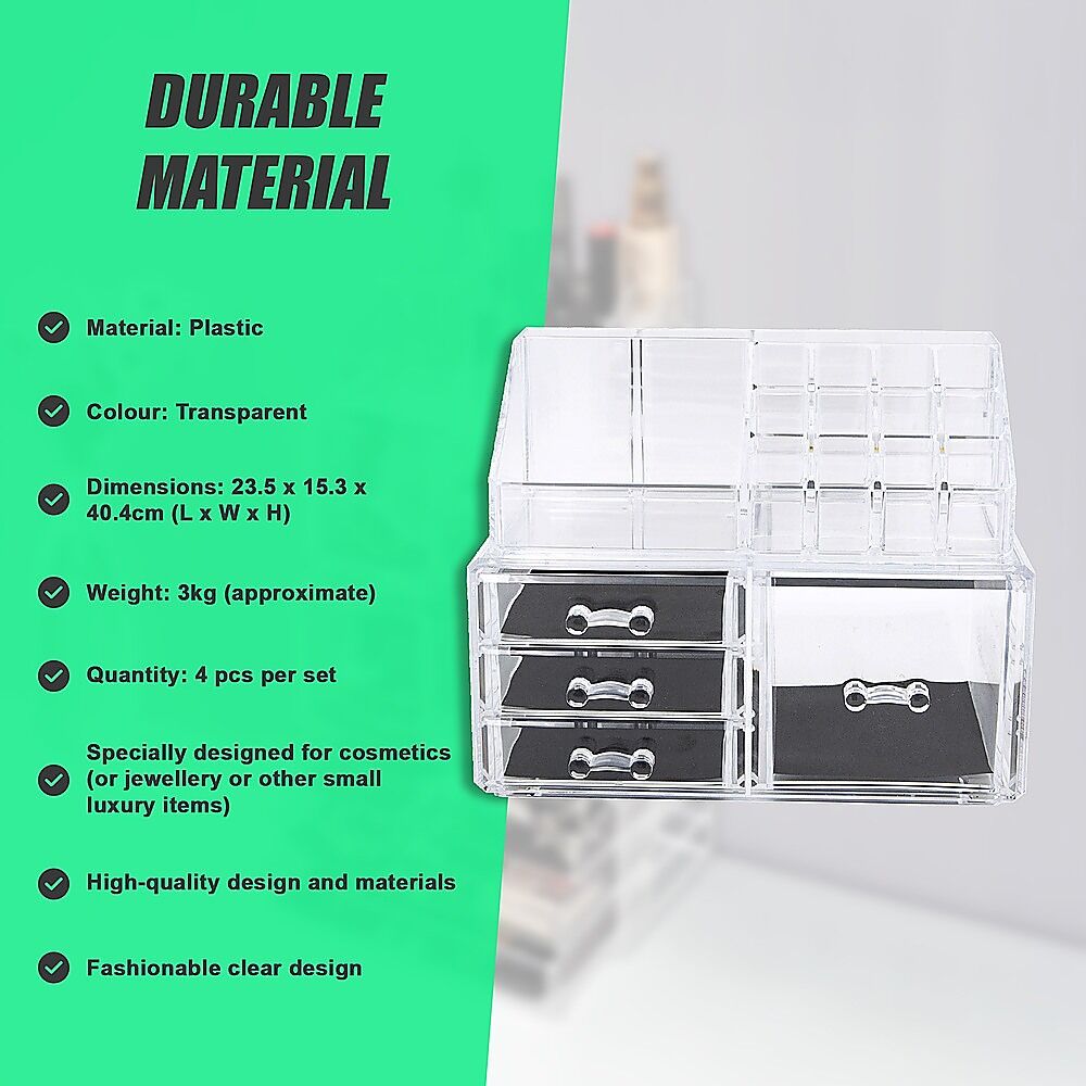 Crafted with durable material, this 11-drawer rack nevertheless has a dainty, beautiful look. It is made with acrylic plastic and comes in four pieces per set. Its compact design makes things easy. This organiser can also be combined with other sets and you can configure it in a variety of ways. Want to make your beauty routine clear as day? Get yours today!