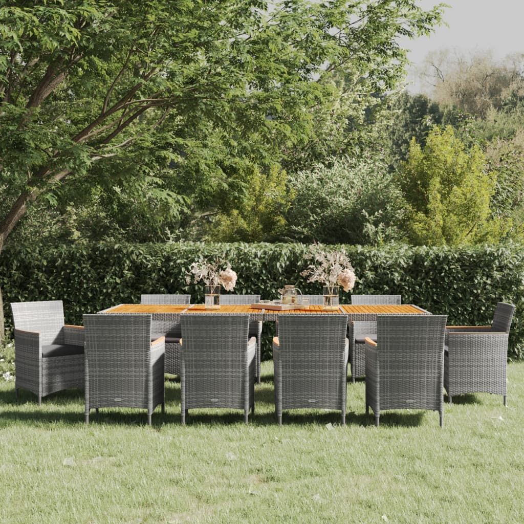 NOW $1,202.44This garden dining set, with an elegant and contemporary design, will be a great choice for dining or relaxing in the garden. Durable material: Featuring the powder-coated steel frame wrapped with poly rattan, this outdoor dining set is durable and easy to clean.Comfortable armrest and backrest: The outdoor chair is designed with a curved backrest and armrests, making it an ergonomic shape for you.Soft cushion: The thick and soft seat cushion of the patio chair adds extra comfort while seating.Sturdy tabletop: This dinner table provides you with a sturdy tabletop. You can place your snacks, drinks and any of your favourite decorations. Note:In order to extend the life of your outdoor furniture, we recommend you to protect it with a waterproof cover.Each product comes with an assembly manual in the box for easy assembly.