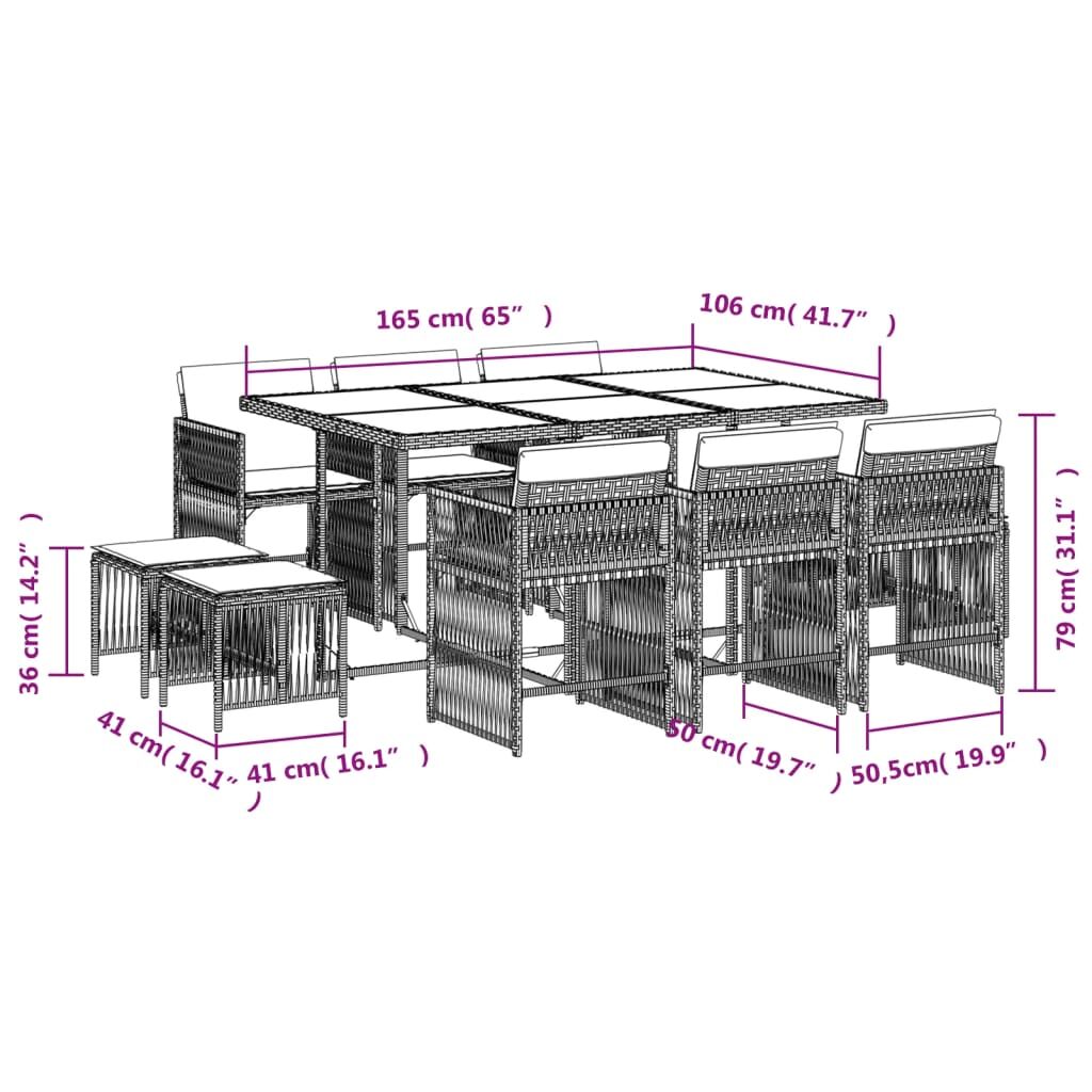 $785.69This garden dining set is a great choice for al fresco dining or just relaxing in the garden, backyard, or patio. Durable material: PE rattan, also known as poly rattan, is a strong, low-maintenance synthetic material that looks like natural rattan. It's lightweight, easy to clean, and commonly used for outdoor furniture due to its durability and weather-resistant properties.Compact storage: These chairs have a flap backrest that can be folded down, making it easy to store them under the table. When folded, they neatly fit under the table, forming a space-saving cube shape.Comfortable seat experience: This outdoor furniture, complete with thickly padded cushions, offers a comfortable seating experience.Removable and washable cover: These seat cushions feature removable covers for easy washing and maintenance. The cushion covers have a flap at the back for easy attachment to the backrests.Stable and easy-to-clean tabletop: This garden table has an acacia wood top that is sturdy, durable, and easy to clean with a damp cloth. Good to know:To make sure your outdoor furniture stays beautiful, we recommend protecting it with a waterproof cover.