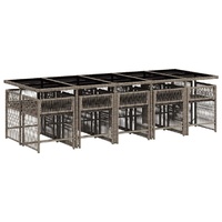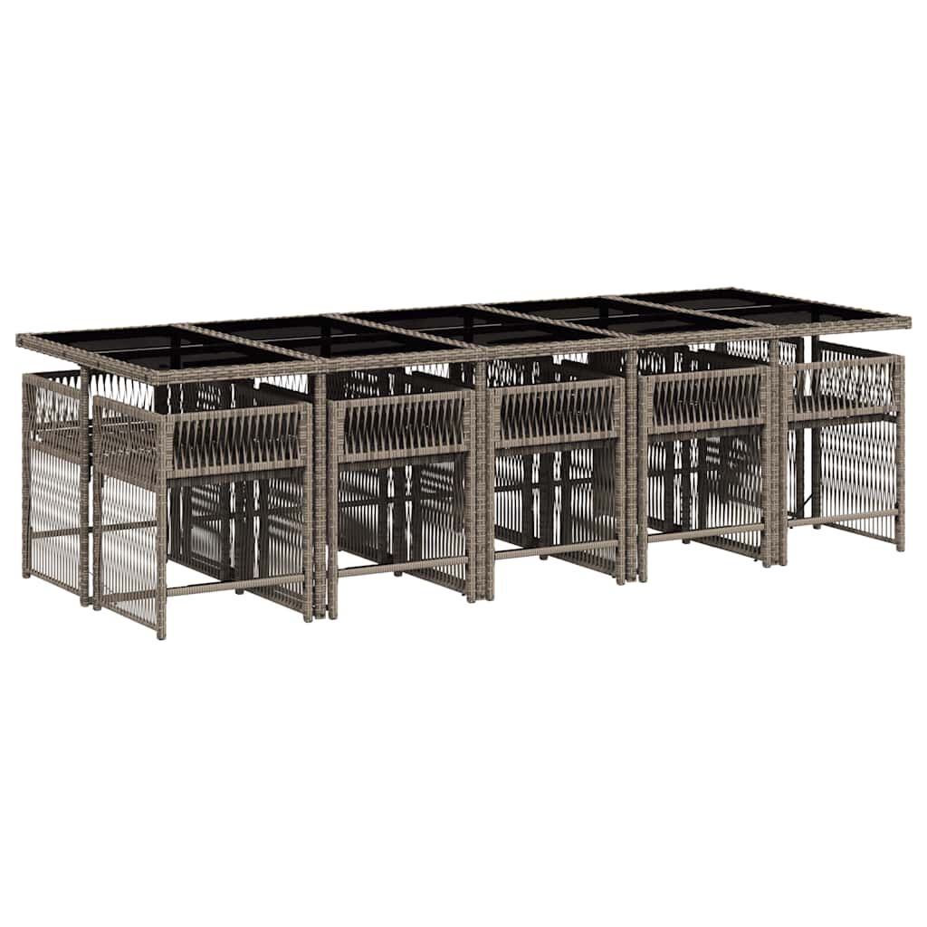 $1,043.99This garden dining set is a great choice for al fresco dining or just relaxing in the garden, backyard, or patio. Durable material: PE rattan, also known as poly rattan, is a strong, low-maintenance synthetic material that looks like natural rattan. It's lightweight, easy to clean, and commonly used for outdoor furniture due to its durability and weather-resistant properties.Compact storage: These chairs have a flap backrest that can be folded down, making it easy to store them under the table. When folded, they neatly fit under the table, forming a space-saving cube shape.Comfortable seat experience: This outdoor furniture, complete with thickly padded cushions, offers a comfortable seating experience.Removable and washable cover: These seat cushions feature removable covers for easy washing and maintenance. The cushion covers have a flap at the back for easy attachment to the backrests.Glass tabletop: The outdoor table's top is made from strong and durable tempered glass, making it easy to clean with a damp cloth and adding a touch of elegance to your outdoor space. Good to know:To make sure your outdoor furniture stays beautiful, we recommend protecting it with a waterproof cover.