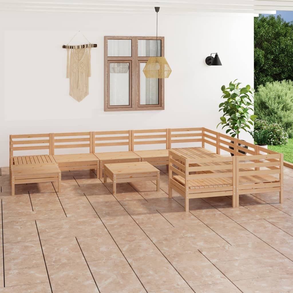 This wooden garden lounge set is an ideal choice for you to relax and enjoy the weather, take a nap or have a chat with your family or friends. With a timeless pallet design, the wooden sofa will add a touch of rustic charm to your patio, garden or living room. Made of solid pinewood, this patio lounge set is highly durable, weather resistant and environmental friendly. This furniture set has a solid construction and requires little maintenance. Additionally, the modular design also makes it possible to place the set in any arrangement as per your taste. Note: In order to extend the life of your outdoor furniture, we recommend you to clean it regularly and do not leave it outdoors without protection unnecessarily.Clean: Use a mild soap solution.Storing: If possible, store in a cool, dry place indoors. If the product is stored outdoors, protect it with a waterproof cover. Wipe and dry the excess water or snow from flat surfaces after a rain or snowfall. Allow sufficient air circulation to avoid moisture-related damage.