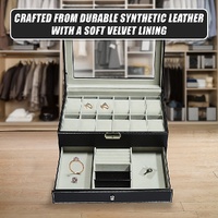 $62.30If you love your jewelleryand love to display itthis lovely 12-grid watch and jewellery box organiser from Randy Travis Machinery is the perfect choice for you. Crafted from durable synthetic leather with a soft velvet lining, this elegant box holds watches, rings, necklaces, bracelets, pins, and other jewellery in style.