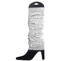 12 LEG WARMERS Knitted Womens Neon Party Knit Ankle Fluro Dance Costume 80s BULK - White