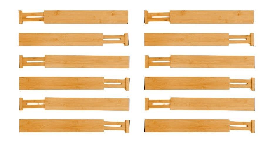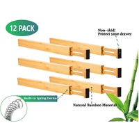 12 Pack Bamboo Adjustable Kitchen Drawer Dividers (Large, 44-55 cm)