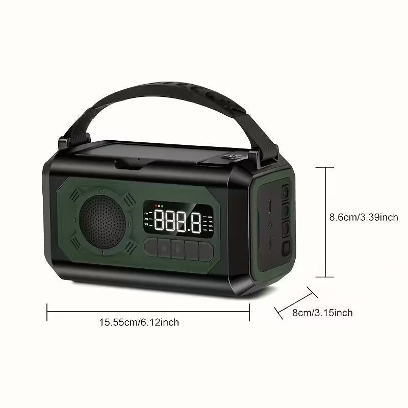 The 12000mAh Emergency Radio is your all-in-one survival companion. It combines solar, hand crank, and USB charging to keep your devices powered anytime. With AM/FM/NOAA weather alerts, SOS alarm, flashlight, compass, and reading lamp, you’ll stay prepared in any situation. Refer to the image for exact dimensions and design details. Perfect for camping, hiking, or emergency preparedness, this portable device ensures you never lose communication or visibility in critical moments.