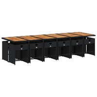 $1,446.29This garden dining set is a great choice for al fresco dining or just relaxing in the garden, backyard, or on the patio. Durable material: PE rattan, also known as poly rattan, is a strong, low-maintenance synthetic material that looks like natural rattan. It's lightweight, easy to clean, and commonly used for outdoor furniture due to its durability and weather-resistant properties.Compact storage: These chairs have a flap backrest that can be folded down, making it easy to store them under the table. When folded, they neatly fit under the table, forming a space-saving cube shape.Comfortable seat experience: This outdoor furniture, complete with thickly padded cushions, offers a comfortable seating experience.Removable and washable cover: These seat cushions feature removable covers for easy washing and maintenance. The chair cushion covers have a flap at the back for easy attachment to the chairs.Stable and easy-to-clean tabletop: This garden table has an acacia wood top that is sturdy, durable, and easy to clean with a damp cloth. Good to know: To make sure your outdoor furniture stays beautiful, we recommend protecting it with a waterproof cover.