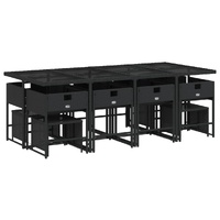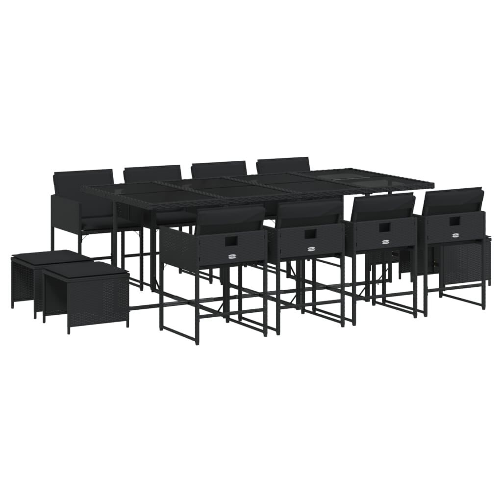 $925.19This garden dining set is a great choice for al fresco dining or just relaxing in the garden, backyard, or on the patio. Durable material: PE rattan, also known as poly rattan, is a strong, low-maintenance synthetic material that looks like natural rattan. It's lightweight, easy to clean, and commonly used for outdoor furniture due to its durability and weather-resistant properties.Compact storage: These chairs have a flap backrest that can be folded down, making it easy to store them under the table. When folded, they neatly fit under the table, forming a space-saving cube shape. Additionally, the stools can also be stored under the chairs, further maximising space efficiency.Comfortable seat experience: This outdoor furniture, complete with thickly padded cushions, offers a comfortable seating experience.Removable and washable cover: These seat cushions feature removable covers for easy washing and maintenance. The cushion covers have a flap at the back for easy attachment to the backrests.Glass tabletop: The outdoor table's top is made from strong and durable tempered glass, making it easy to clean with a damp cloth and adding a touch of elegance to your outdoor space. Good to know: To make sure your outdoor furniture stays beautiful, we recommend protecting it with a waterproof cover.