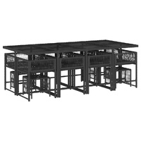 $971.99This garden dining set is a great choice for al fresco dining or just relaxing in the garden, backyard, or on the patio. Durable material: PE rattan, also known as poly rattan, is a strong, low-maintenance synthetic material that looks like natural rattan. It's lightweight, easy to clean, and commonly used for outdoor furniture due to its durability and weather-resistant properties.Compact storage: These chairs have a flap backrest that can be folded down, making it easy to store them under the table. When folded, they neatly fit under the table, forming a space-saving cube shape. Additionally, the stools can also be stored under the chairs, further maximizing space efficiency.Comfortable seat experience: This outdoor furniture, complete with thickly padded cushions, offers a comfortable seating experience.Removable and washable cover: These seat cushions feature removable covers for easy washing and maintenance. The cushion covers have a flap at the back for easy attachment to the backrests.Glass tabletop: The outdoor table's top is made from strong and durable tempered glass, making it easy to clean with a damp cloth and adding a touch of elegance to your outdoor space. Good to know:To make sure your outdoor furniture stays beautiful, we recommend protecting it with a waterproof cover.
