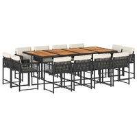 $1,202.39This garden dining set is a great choice for al fresco dining or just relaxing in the garden, backyard, or on the patio. Durable material: PE rattan, also known as poly rattan, is a strong, low-maintenance synthetic material that looks like natural rattan. It's lightweight, easy to clean, and commonly used for outdoor furniture due to its durability and weather-resistant properties.Compact storage: These chairs have a flap backrest that can be folded down, making it easy to store them under the table. When folded, they neatly fit under the table, forming a space-saving cube shape.Comfortable seat experience: This outdoor furniture, complete with thickly padded cushions, offers a comfortable seating experience.Removable and washable cover: These seat cushions feature removable covers for easy washing and maintenance. The cushion covers have a flap at the back for easy attachment to the backrests.Stable and easy-to-clean tabletop: This garden table has an acacia wood top that is sturdy, durable, and easy to clean with a damp cloth. Good to know:To make sure your outdoor furniture stays beautiful, we recommend protecting it with a waterproof cover.