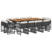 $1,157.39This garden dining set is a great choice for al fresco dining or just relaxing in the garden, backyard, or patio. Durable material: PE rattan, also known as poly rattan, is a strong, low-maintenance synthetic material that looks like natural rattan. It's lightweight, easy to clean, and commonly used for outdoor furniture due to its durability and weather-resistant properties.Compact storage: These chairs have a flap backrest that can be folded down, making it easy to store them under the table. When folded, they neatly fit under the table, forming a space-saving cube shape.Comfortable seat experience: This outdoor furniture, complete with thickly padded cushions, offers a comfortable seating experience.Removable and washable cover: These seat cushions feature removable covers for easy washing and maintenance. The cushion covers have a flap at the back for easy attachment to the backrests.Stable and easy-to-clean tabletop: This garden table has an acacia wood top that is sturdy, durable, and easy to clean with a damp cloth. Good to know:To make sure your outdoor furniture stays beautiful, we recommend protecting it with a waterproof cover.