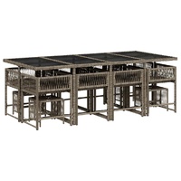 $856.79This garden dining set is a great choice for al fresco dining or just relaxing in the garden, backyard, or on the patio. Durable material: PE rattan, also known as poly rattan, is a strong, low-maintenance synthetic material that looks like natural rattan. It's lightweight, easy to clean, and commonly used for outdoor furniture due to its durability and weather-resistant properties.Compact storage: These chairs have a flap backrest that can be folded down, making it easy to store them under the table. When folded, they neatly fit under the table, forming a space-saving cube shape. Additionally, the stools can also be stored under the chairs, further maximizing space efficiency.Comfortable seat experience: This outdoor furniture, complete with thickly padded cushions, offers a comfortable seating experience.Removable and washable cover: These seat cushions feature removable covers for easy washing and maintenance. The cushion covers have a flap at the back for easy attachment to the backrests.Glass tabletop: The outdoor table's top is made from strong and durable tempered glass, making it easy to clean with a damp cloth and adding a touch of elegance to your outdoor space. Good to know:To make sure your outdoor furniture stays beautiful, we recommend protecting it with a waterproof cover.