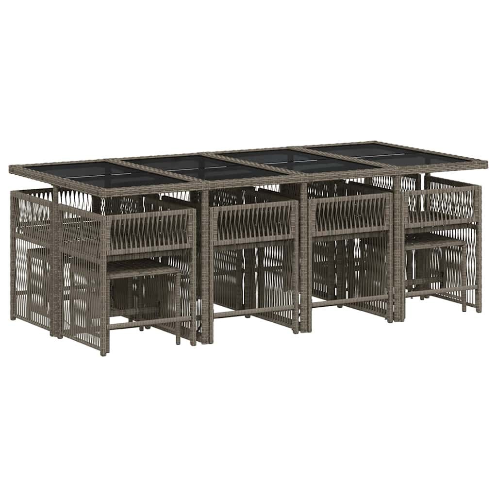 $934.19This garden dining set is a great choice for al fresco dining or just relaxing in the garden, backyard, or patio. Durable material: PE rattan, also known as poly rattan, is a strong, low-maintenance synthetic material that looks like natural rattan. It's lightweight, easy to clean, and commonly used for outdoor furniture due to its durability and weather-resistant properties.Compact storage: These chairs have a flap backrest that can be folded down, making it easy to store them under the table. When folded, they neatly fit under the table, forming a space-saving cube shape.Comfortable seat experience: This outdoor furniture, complete with thickly padded cushions, offers a comfortable seating experience.Removable and washable cover: These seat cushions feature removable covers for easy washing and maintenance. The cushion covers have a flap at the back for easy attachment to the backrests.Glass tabletop: The outdoor table's top is made from strong and durable tempered glass, making it easy to clean with a damp cloth and adding a touch of elegance to your outdoor space. Good to know:To make sure your outdoor furniture stays beautiful, we recommend protecting it with a waterproof cover.
