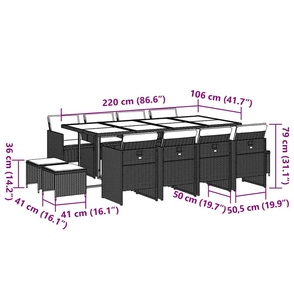 NOW $979.28This garden dining set is a great choice for al fresco dining or just relaxing in the garden, backyard, or on the patio. Durable material: PE rattan, also known as poly rattan, is a strong, low-maintenance synthetic material that looks like natural rattan. It's lightweight, easy to clean, and commonly used for outdoor furniture due to its durability and weather-resistant properties.Compact storage: These chairs have a flap backrest that can be folded down, making it easy to store them under the table. When folded, they neatly fit under the table, forming a space-saving cube shape. Additionally, the stools can also be stored under the chairs, further maximising space efficiency. Comfortable seat experience: This outdoor furniture, complete with thickly padded cushions, offers a comfortable seating experience.Removable and washable cover: These seat cushions feature removable covers for easy washing and maintenance.Glass tabletop: The outdoor table's top is made from strong and durable tempered glass, making it easy to clean with a damp cloth and adding a touch of elegance to your outdoor space. Good to know: To make sure your outdoor furniture stays beautiful, we recommend protecting it with a waterproof cover.