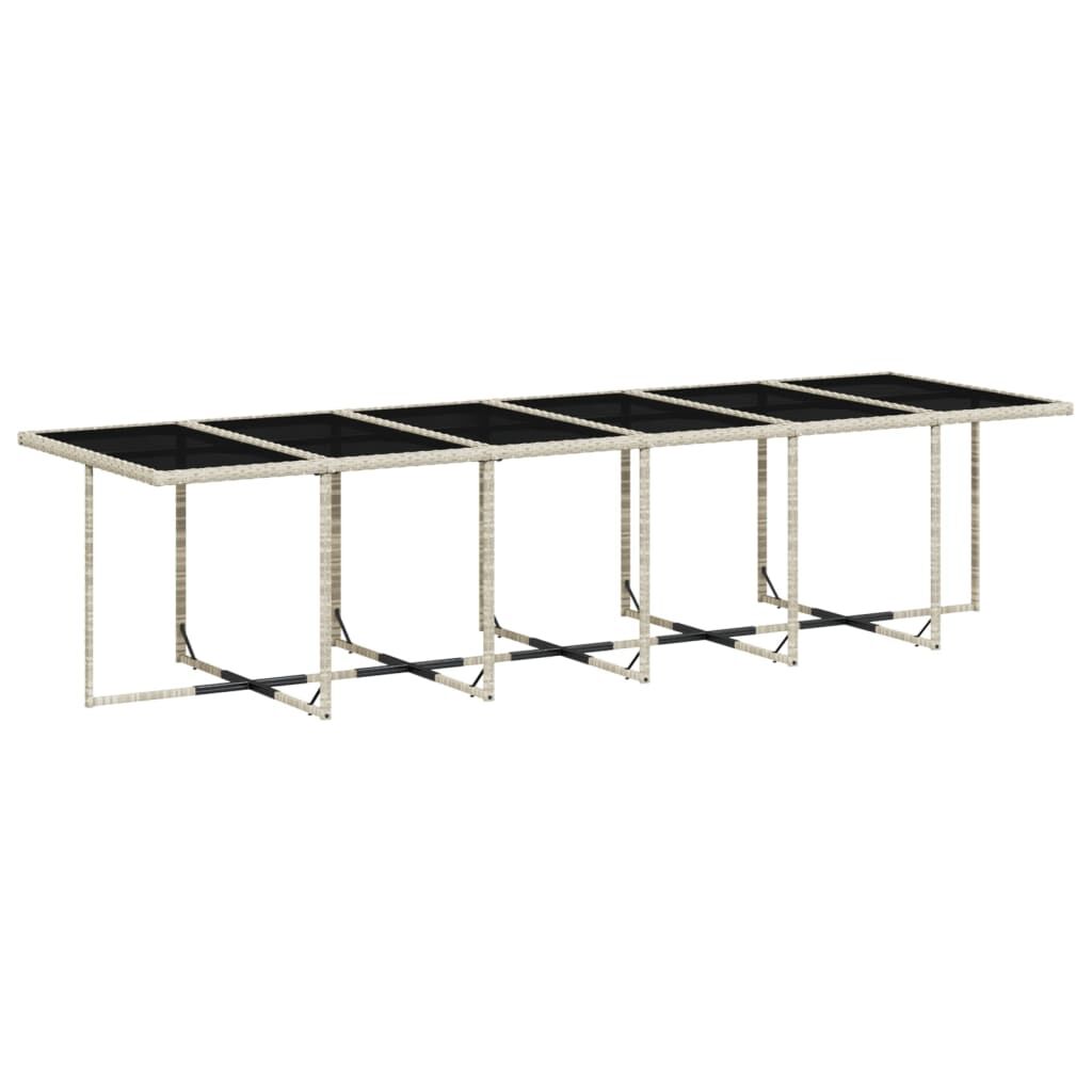 $1,112.39This garden dining set is a great choice for al fresco dining or just relaxing in the garden, backyard, or on the patio. Durable material: PE rattan, also known as poly rattan, is a strong, low-maintenance synthetic material that looks like natural rattan. It's lightweight, easy to clean, and commonly used for outdoor furniture due to its durability and weather-resistant properties.Compact storage: These chairs have a flap backrest that can be folded down, making it easy to store them under the table. When folded, they neatly fit under the table, forming a space-saving cube shape.Comfortable seat experience: This outdoor furniture, complete with thickly padded cushions, offers a comfortable seating experience.Removable and washable cover: These seat cushions feature removable covers for easy washing and maintenance. The cushion covers have a flap at the back for easy attachment to the backrests.Glass tabletop: The outdoor table's top is made from strong and durable tempered glass, making it easy to clean with a damp cloth and adding a touch of elegance to your outdoor space. Good to know:To make sure your outdoor furniture stays beautiful, we recommend protecting it with a waterproof cover.