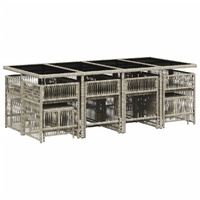 $922.49This garden dining set is a great choice for al fresco dining or just relaxing in the garden, backyard, or patio. Durable material: PE rattan, also known as poly rattan, is a strong, low-maintenance synthetic material that looks like natural rattan. It's lightweight, easy to clean, and commonly used for outdoor furniture due to its durability and weather-resistant properties.Compact storage: These chairs have a flap backrest that can be folded down, making it easy to store them under the table. When folded, they neatly fit under the table, forming a space-saving cube shape.Comfortable seat experience: This outdoor furniture, complete with thickly padded cushions, offers a comfortable seating experience.Removable and washable cover: These seat cushions feature removable covers for easy washing and maintenance. The cushion covers have a flap at the back for easy attachment to the backrests.Glass tabletop: The outdoor table's top is made from strong and durable tempered glass, making it easy to clean with a damp cloth and adding a touch of elegance to your outdoor space. Good to know:To make sure your outdoor furniture stays beautiful, we recommend protecting it with a waterproof cover.