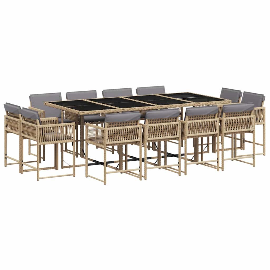 $1,150.19This garden dining set is a great choice for al fresco dining or just relaxing in the garden, backyard, or on the patio. Durable material: PE rattan, also known as poly rattan, is a strong, low-maintenance synthetic material that looks like natural rattan. It's lightweight, easy to clean, and commonly used for outdoor furniture due to its durability and weather-resistant properties.Compact storage: These chairs have a flap backrest that can be folded down, making it easy to store them under the table. When folded, they neatly fit under the table, forming a space-saving cube shape.Comfortable seat experience: This outdoor furniture, complete with thickly padded cushions, offers a comfortable seating experience.Removable and washable cover: These seat cushions feature removable covers for easy washing and maintenance. The cushion covers have a flap at the back for easy attachment to the backrests.Glass tabletop: The outdoor table's top is made from strong and durable tempered glass, making it easy to clean with a damp cloth and adding a touch of elegance to your outdoor space. Good to know:To make sure your outdoor furniture stays beautiful, we recommend protecting it with a waterproof cover.