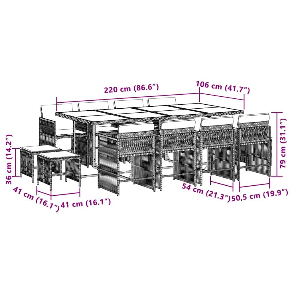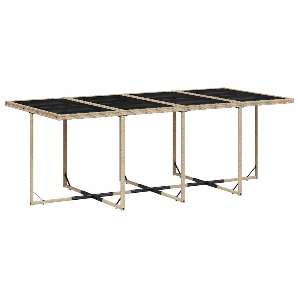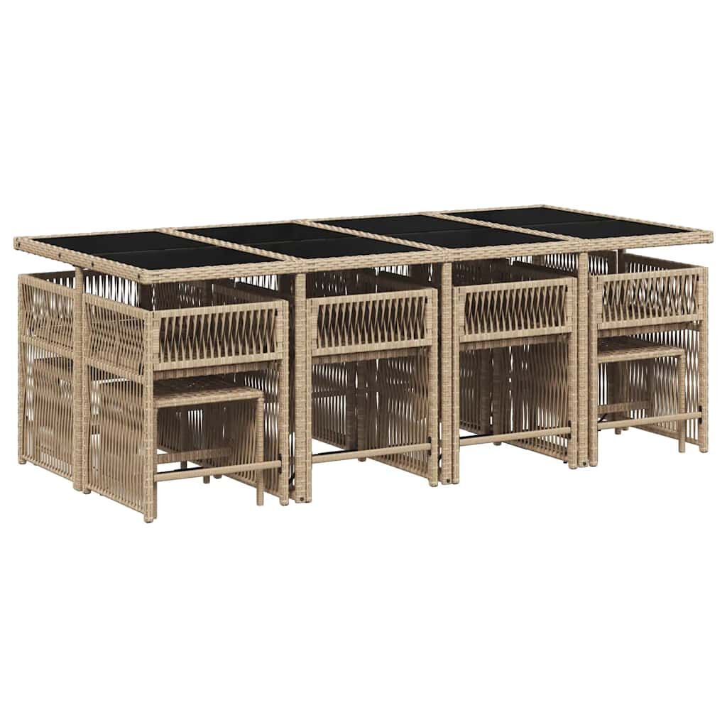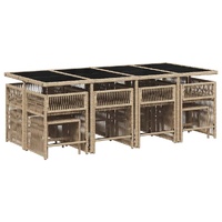$908.09This garden dining set is a great choice for al fresco dining or just relaxing in the garden, backyard, or patio. Durable material: PE rattan, also known as poly rattan, is a strong, low-maintenance synthetic material that looks like natural rattan. It's lightweight, easy to clean, and commonly used for outdoor furniture due to its durability and weather-resistant properties.Compact storage: These chairs have a flap backrest that can be folded down, making it easy to store them under the table. When folded, they neatly fit under the table, forming a space-saving cube shape.Comfortable seat experience: This outdoor furniture, complete with thickly padded cushions, offers a comfortable seating experience.Removable and washable cover: These seat cushions feature removable covers for easy washing and maintenance. The cushion covers have a flap at the back for easy attachment to the backrests.Glass tabletop: The outdoor table's top is made from strong and durable tempered glass, making it easy to clean with a damp cloth and adding a touch of elegance to your outdoor space. Good to know:To make sure your outdoor furniture stays beautiful, we recommend protecting it with a waterproof cover.