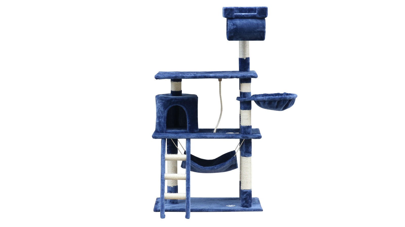 Our latest cat tree is the ultimate home for any cats. It combines scratching, perching, chasing, climbing and just plain fun all in one piece. The multiple platforms allow your cats to jump around; and the plush carpeted surface provides extra comfort.The cat tree comes with 2 bed cubes and a few platforms to provide some shelter. The tubes are wrapped with sisal ropes for your pets to scratch and play with. The sturdy base prevents any swaying so it is safe on any flat surface so you do not have to worry about injury to your cat. The stylish cat tree will perfectly blend in with your decor.