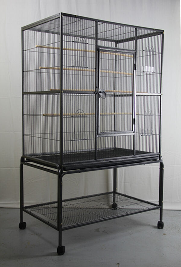 Our goodquality wrought iron birdcage features perches, feeders and ample room for your bird to spread their wings.