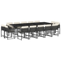 $1,233.89This garden dining set is a great choice for al fresco dining or just relaxing in the garden, backyard, or on the patio. Durable material: PE rattan, also known as poly rattan, is a strong, low-maintenance synthetic material that looks like natural rattan. It's lightweight, easy to clean, and commonly used for outdoor furniture due to its durability and weather-resistant properties.Compact storage: These chairs have a flap backrest that can be folded down, making it easy to store them under the table. When folded, they neatly fit under the table, forming a space-saving cube shape.Comfortable seat experience: This outdoor furniture, complete with thickly padded cushions, offers a comfortable seating experience.Removable and washable cover: These seat cushions feature removable covers for easy washing and maintenance. The cushion covers have a flap at the back for easy attachment to the backrests.Glass tabletop: The outdoor table's top is made from strong and durable tempered glass, making it easy to clean with a damp cloth and adding a touch of elegance to your outdoor space. Good to know:To make sure your outdoor furniture stays beautiful, we recommend protecting it with a waterproof cover.