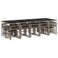 NOW $1,070.42This garden dining set is a great choice for al fresco dining or just relaxing in the garden, backyard, or on the patio. Durable material: PE rattan, also known as poly rattan, is a strong, low-maintenance synthetic material that looks like natural rattan. It's lightweight, easy to clean, and commonly used for outdoor furniture due to its durability and weather-resistant properties.Compact storage: These chairs have a flap backrest that can be folded down, making it easy to store them under the table. When folded, they neatly fit under the table, forming a space-saving cube shape. Additionally, the stools can also be stored under the chairs, further maximizing space efficiency.Comfortable seat experience: This outdoor furniture, complete with thickly padded cushions, offers a comfortable seating experience.Removable and washable cover: These seat cushions feature removable covers for easy washing and maintenance. The cushion covers have a flap at the back for easy attachment to the backrests.Glass tabletop: The outdoor table's top is made from strong and durable tempered glass, making it easy to clean with a damp cloth and adding a touch of elegance to your outdoor space. Good to know:To make sure your outdoor furniture stays beautiful, we recommend protecting it with a waterproof cover.