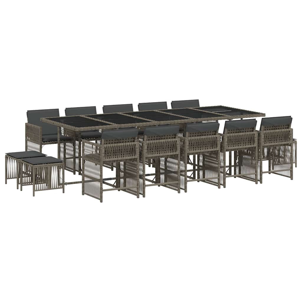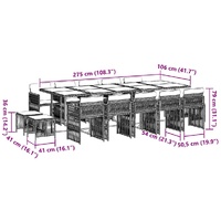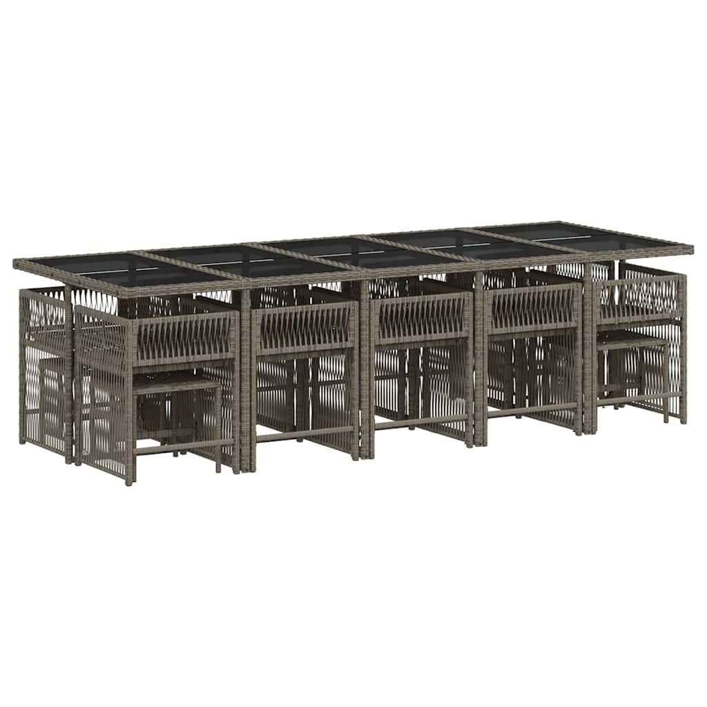 $1,131.29This garden dining set is a great choice for al fresco dining or just relaxing in the garden, backyard, or patio. Durable material: PE rattan, also known as poly rattan, is a strong, low-maintenance synthetic material that looks like natural rattan. It's lightweight, easy to clean, and commonly used for outdoor furniture due to its durability and weather-resistant properties.Compact storage: These chairs have a flap backrest that can be folded down, making it easy to store them under the table. When folded, they neatly fit under the table, forming a space-saving cube shape.Comfortable seat experience: This outdoor furniture, complete with thickly padded cushions, offers a comfortable seating experience.Removable and washable cover: These seat cushions feature removable covers for easy washing and maintenance. The cushion covers have a flap at the back for easy attachment to the backrests.Glass tabletop: The outdoor table's top is made from strong and durable tempered glass, making it easy to clean with a damp cloth and adding a touch of elegance to your outdoor space. Good to know:To make sure your outdoor furniture stays beautiful, we recommend protecting it with a waterproof cover.