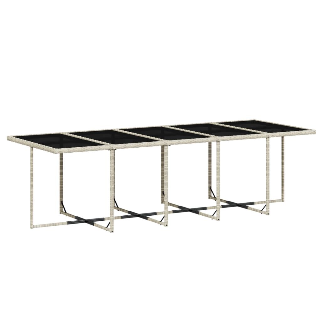 $1,117.79This garden dining set is a great choice for al fresco dining or just relaxing in the garden, backyard, or patio. Durable material: PE rattan, also known as poly rattan, is a strong, low-maintenance synthetic material that looks like natural rattan. It's lightweight, easy to clean, and commonly used for outdoor furniture due to its durability and weather-resistant properties.Compact storage: These chairs have a flap backrest that can be folded down, making it easy to store them under the table. When folded, they neatly fit under the table, forming a space-saving cube shape.Comfortable seat experience: This outdoor furniture, complete with thickly padded cushions, offers a comfortable seating experience.Removable and washable cover: These seat cushions feature removable covers for easy washing and maintenance. The cushion covers have a flap at the back for easy attachment to the backrests.Glass tabletop: The outdoor table's top is made from strong and durable tempered glass, making it easy to clean with a damp cloth and adding a touch of elegance to your outdoor space. Good to know:To make sure your outdoor furniture stays beautiful, we recommend protecting it with a waterproof cover.