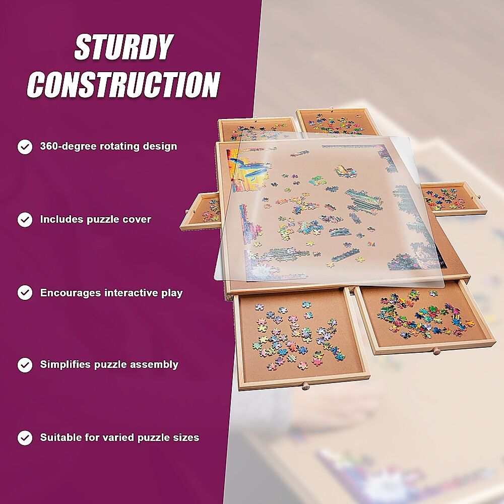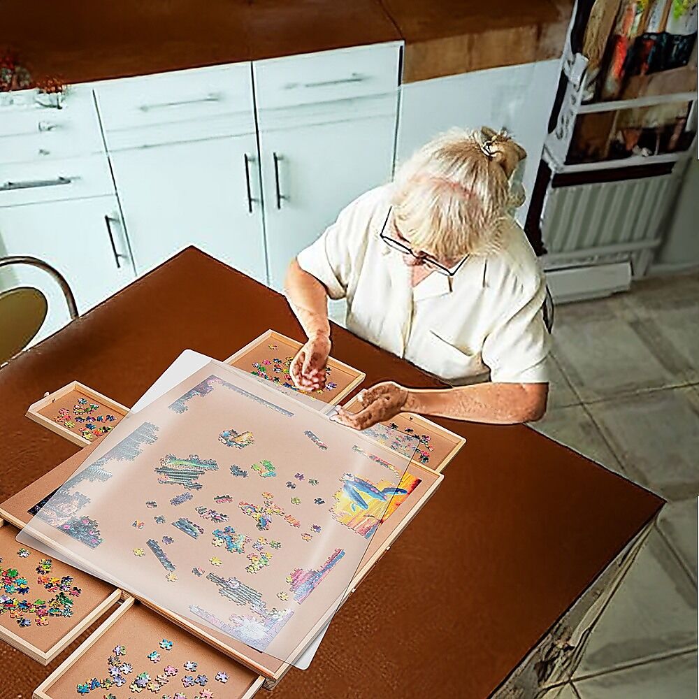 But wait, there's more! Our Rotating Puzzle Board isn't your run-of-the-mill puzzle platform; it comes equipped with a protective puzzle cover. Crafted to shield your unfinished puzzles from accidental disturbances, this cover ensures your hard work remains undisturbed. Easy to apply and remove, it adds an extra layer of security to keep your puzzle pieces in place.