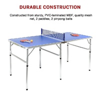 Weighing only 9kg, it's easy to carry from one room to another. You can even take it outside for family fun in the sun. Take it along with you on holiday to keep the kids busy as you plan your next adventure. Serious table tennis aficionados will enjoy its regulation height. Although it's only 5/9 the length of a regulation table, it provides just as much fun and exercise as a full-sized table, especially in small spaces. Don't let a small space hold you back from fun. Order your ping-pong set today!