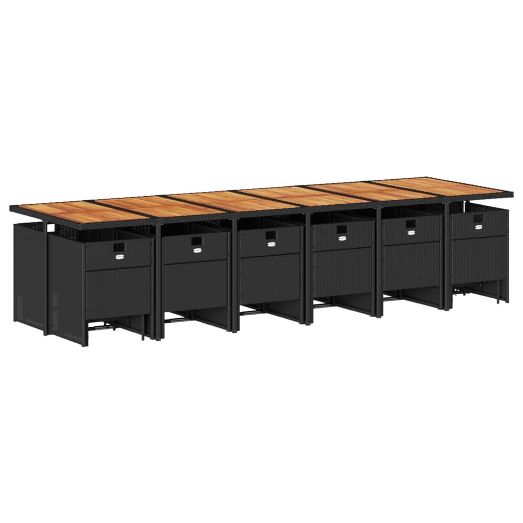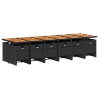 $1,561.46This garden dining set is a great choice for al fresco dining or just relaxing in the garden, backyard, or on the patio. Durable material: PE rattan, also known as poly rattan, is a strong, low-maintenance synthetic material that looks like natural rattan. It's lightweight, easy to clean, and commonly used for outdoor furniture due to its durability and weather-resistant properties.Compact storage: These chairs have a flap backrest that can be folded down, making it easy to store them under the table. When folded, they neatly fit under the table, forming a space-saving cube shape. Additionally, the stools can also be stored under the chairs, further maximising space efficiency. Comfortable seat experience: This outdoor furniture, complete with thickly padded cushions, offers a comfortable seating experience.Removable and washable cover: These seat cushions feature removable covers for easy washing and maintenance.Stable and easy-to-clean tabletop: This garden table has an acacia wood top that is sturdy, durable, and easy to clean with a damp cloth. Good to know: To make sure your outdoor furniture stays beautiful, we recommend protecting it with a waterproof cover.
