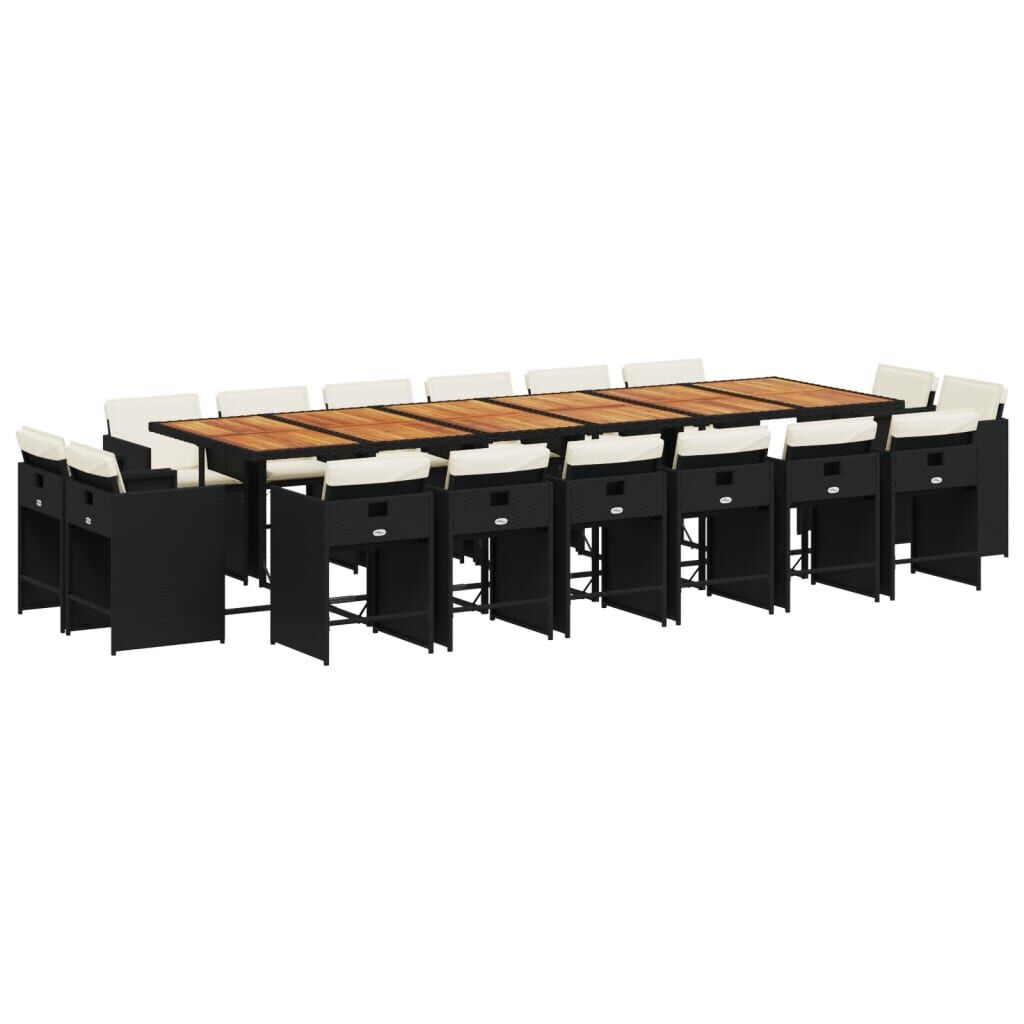 $1,373.60This garden dining set is a great choice for al fresco dining or just relaxing in the garden, backyard, or on the patio. Durable material: PE rattan, also known as poly rattan, is a strong, low-maintenance synthetic material that looks like natural rattan. It's lightweight, easy to clean, and commonly used for outdoor furniture due to its durability and weather-resistant properties.Compact storage: These chairs have a flap backrest that can be folded down, making it easy to store them under the table. When folded, they neatly fit under the table, forming a space-saving cube shape.Comfortable seat experience: This outdoor furniture, complete with thickly padded cushions, offers a comfortable seating experience.Removable and washable cover: These seat cushions feature removable covers for easy washing and maintenance. The chair cushion covers have a flap at the back for easy attachment to the chairs.Stable and easy-to-clean tabletop: This garden table has an acacia wood top that is sturdy, durable, and easy to clean with a damp cloth. Good to know: To make sure your outdoor furniture stays beautiful, we recommend protecting it with a waterproof cover.