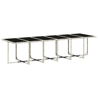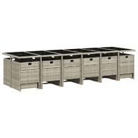$1,529.84This garden dining set is a great choice for al fresco dining or just relaxing in the garden, backyard, or on the patio. Durable material: PE rattan, also known as poly rattan, is a strong, low-maintenance synthetic material that looks like natural rattan. It's lightweight, easy to clean, and commonly used for outdoor furniture due to its durability and weather-resistant properties.Compact storage: These chairs have a flap backrest that can be folded down, making it easy to store them under the table. When folded, they neatly fit under the table, forming a space-saving cube shape. Additionally, the stools can also be stored under the chairs, further maximising space efficiency. Comfortable seat experience: This outdoor furniture, complete with thickly padded cushions, offers a comfortable seating experience.Removable and washable cover: These seat cushions feature removable covers for easy washing and maintenance.Glass tabletop: The outdoor table's top is made from strong and durable tempered glass, making it easy to clean with a damp cloth and adding a touch of elegance to your outdoor space. Good to know: To make sure your outdoor furniture stays beautiful, we recommend protecting it with a waterproof cover.