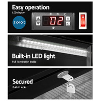 NOW $917.86Our spacious Devanti Bar Fridge with double doors is great for keeping a variety of food and beverages chilled and cooled. Designed with adjustable temperature settings between 2°C and 10°C, the energy-efficient bar fridge lets you set your desired coolness and freshness. Other great features include fan-assisted cooling, LED temperature display, heavy-duty adjustable shelves, double-glazed tempered glass doors, built-in handles and consistent refrigeration to name a few. The bar fridge is also totally eco-friendly with its R600a freon-free refrigerant and well-made for robust use, such as the pressure-injected foam insulation and built-in LED light to ensure operation is smooth, quiet and hassle-free. The fridge also comes with built-in locks to keep the contents safe and secure, especially useful in a retail environment after you close for the night. Perfect for commercial environments such as bars, dessert shops, cafes and restaurants, the Devanti Bar Fridge is a cool investment time and again.