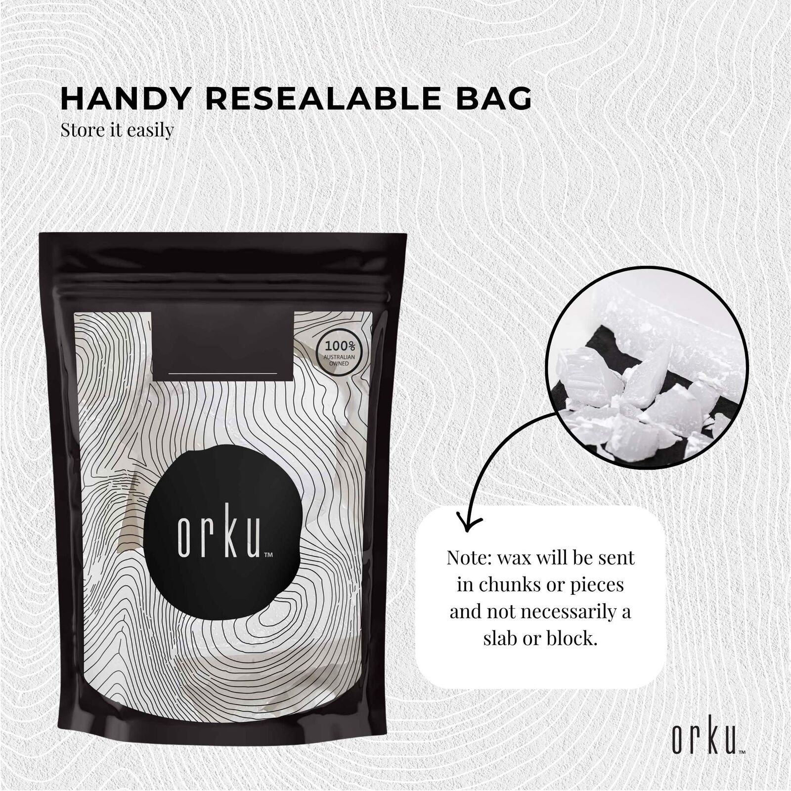 1Kg Paraffin Wax in Resealable Bag.