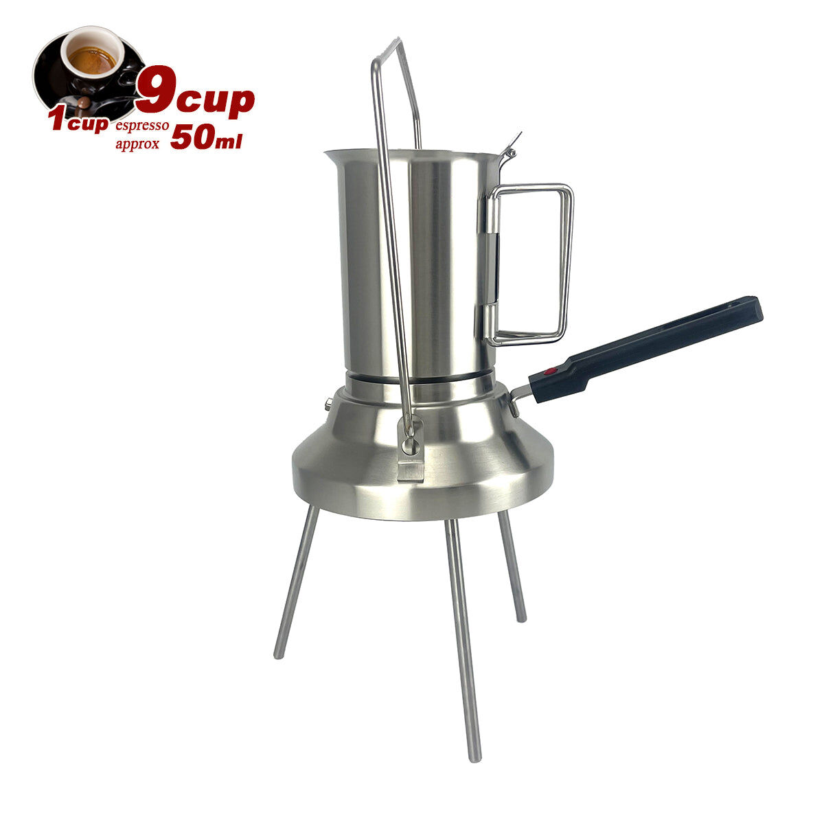 *The camping 2in1 Stainless Steel Moka Coffee Pot allows you to simply enjoy authentic Italian espresso while camping, and can also be used as a kettle to prepare hot drinking water.