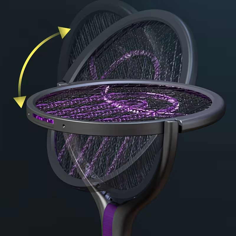 This 2-in-1 foldable and extendable electric mosquito swatter combined with a purple light mosquito killer lamp integrates manual slapping and automatic mosquito attraction, providing an efficient and convenient mosquito control experience for various indoor and outdoor scenarios. It adopts a USB rechargeable design, is equipped with a retractable metal rod and a folding structure, and can be easily carried and used whether at home, in the office, in the backyard or camping.