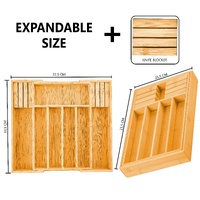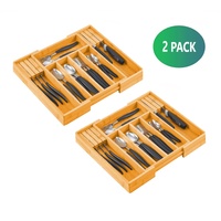 $58.892 Pack Large Capacity Bamboo Expandable Drawer Organizer with Knife Block Holder for Home Kitchen Utensils