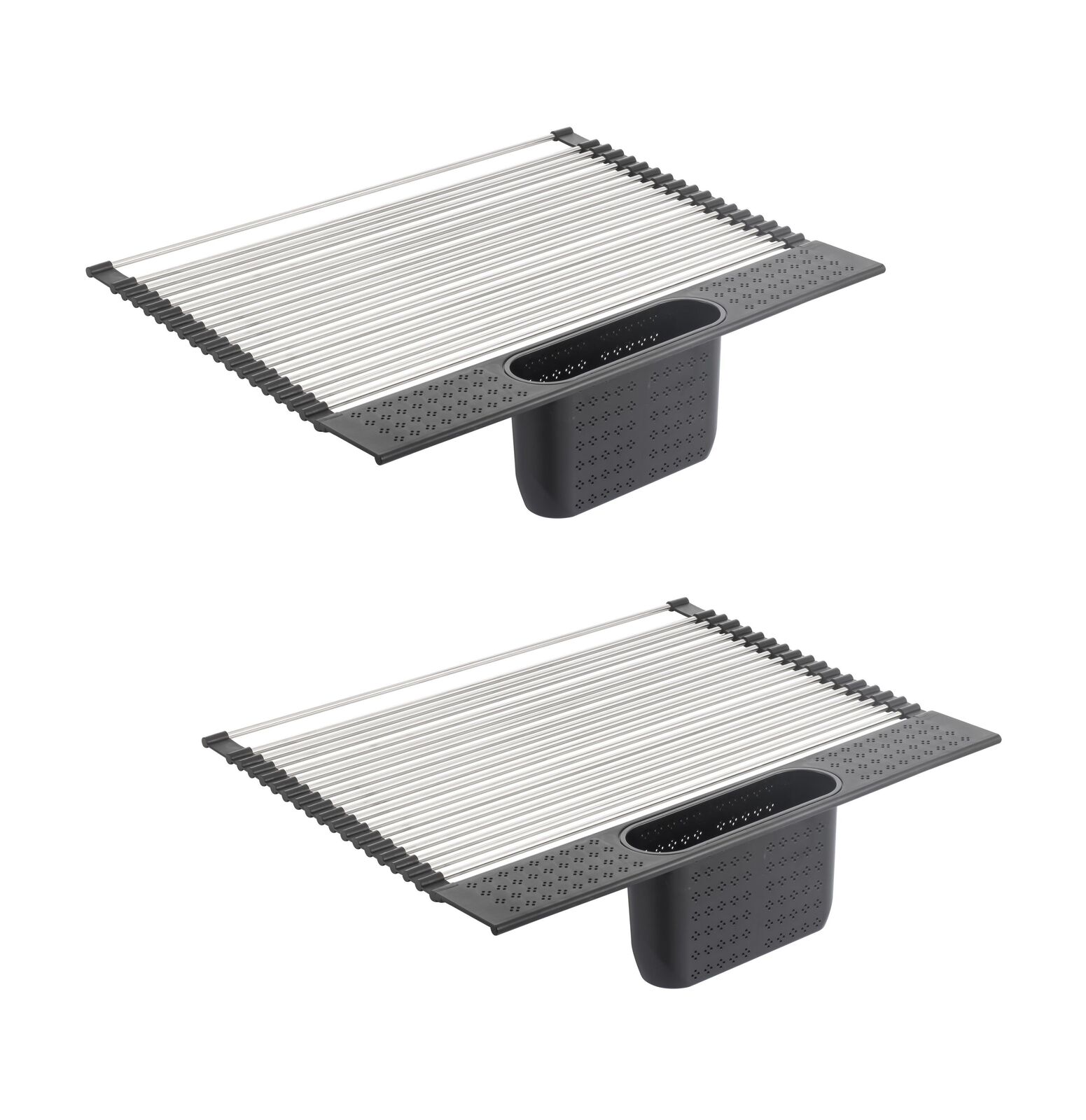$54.862 Pack Large Stainless Steel Roll Up Dish Drying Rack with Utensil Holder for Home Kitchen
