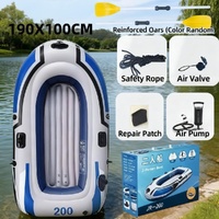 2-Person Inflatable Boat: 190x100cm Thick PVC Raft for Lakes/Pools 180kg Capacity with Oars Pump