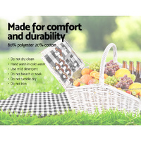 Made from quality willow with PU leather straps and cotton linen lining, this sensational 2 person picnic basket is designed for picnic fun. What's included are for 2 sets of cutleries, wine glasses, plates, napkins and even cheeseboard for an easy and enjoyable outdoor activities. Plus a colour matching blanket to sit on when you find a nice spot anywhere that you desire.This 2 person picnic basket is perfect for the races, harvest picnics, grape grazing events, Christmas and summer gatherings! You'll be surprised how often it will be used.